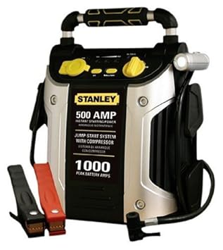 The Stanley 500-Amp Battery Jump Starter with Compressor offers a convenient, portable way to jump-start your battery without the need of another vehicle. Simply attach the clamps and if connected improperly the alarm will sound, alerting you to switch the clamps before turning on the unit. With enough power to jump-start your car, truck, motorcycle, boat, RV or tractor, the Stanley 500-Amp Battery Jump Starter with Compressor is ideal for every day use or roadside emergencies.